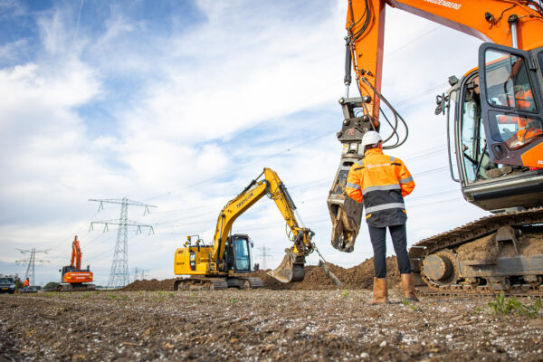 Für jedes Projekt setzen wir das passende Gerät ein. Wir investieren kontinuierlich in die weitere Nachhaltigkeit unseres Maschinen- und Fuhrparks – unter anderem durch Elektrifizierung.