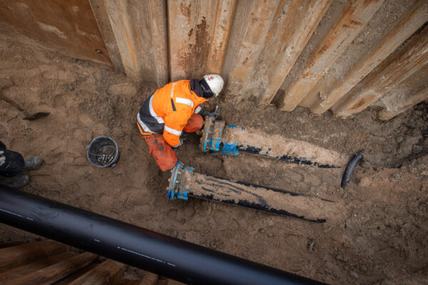 Zo’n groot project doe je samen. Het vraagt om samenwerking, discipline en vooruitdenken. Dat merk je ook in het dagelijks werk. Soms moeten we snel schakelen, juist als het erop aan aankomt. ‘Zo moesten we een keer tot laat in de avond door werken om een sleuf veilig af te sluiten. Dankzij discipline en teamwork kregen we die voor het weekend dicht. Zo bleef het veilig en was de opdrachtgever tevreden,’ vertelt Mike.