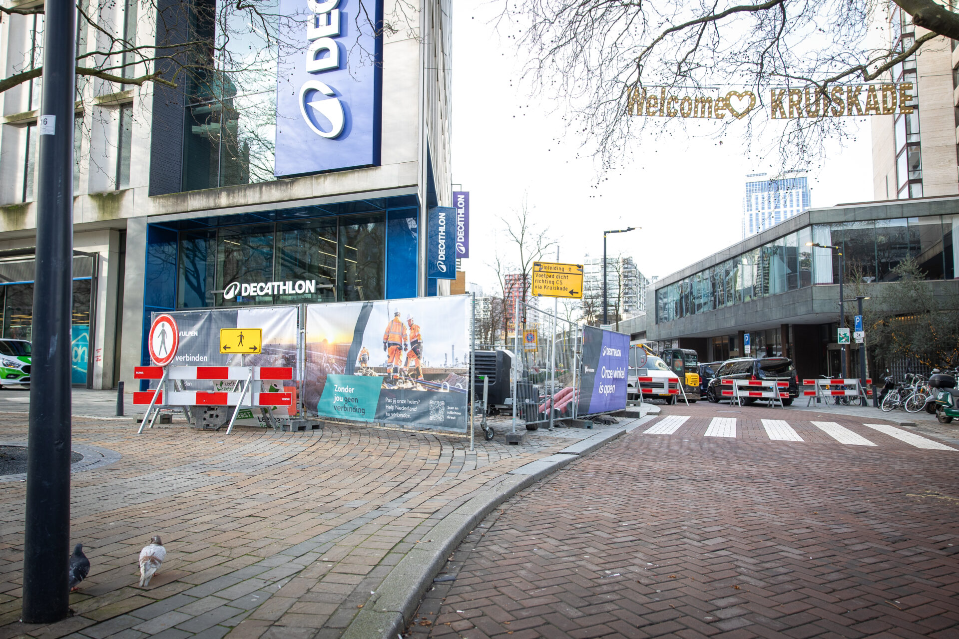 Onze klus bestaat uit een mix aan ondergrondse infrawerkzaamheden midden in de binnenstad. We verleggen en vernieuwen kabels en leidingen, zodat het netwerk veilig en betrouwbaar blijft. Dat doen we stap voor stap mee aan een groen Hofplein, in fases die passen bij de planning van de gemeente en bij wat er buiten gebeurt. Werkvoorbereider Jasper vat het mooi samen: ‘Je werkt hier niet alleen met techniek, maar ook met timing. Alles wat je doet heeft direct invloed op de omgeving. Dus je plant strak, maar je moet ook snel kunnen schakelen.’ En dat schakelen blijkt extra belangrijk bij één plek, de Kruiskade.