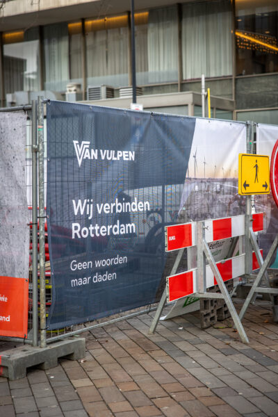 De werkzaamheden aan de Kruiskade zijn cruciaal om de omgeving bereikbaar te houden. In de eerste ronde kunnen we het werk niet afronden. Er duikt een onverwachte situatie op, waardoor we niet verder kunnen. Dat betekent opnieuw plannen, opnieuw afstemmen en ondertussen gaat het gewone leven door. ‘Door die vertraging komen we met de fasering van het Hofplein in het gedrang,’ legt Marco uit. ‘Maar in goed overleg met de gemeente en de omgeving hebben we het zo georganiseerd dat we het werk alsnog kunnen uitvoeren. Ook de scope is uitgebreid, dus het is aanpoten.’ Het resultaat mag er zijn. Sterker nog, het viel op. ‘De complimenten van de gemeente voor hoe we de Kruiskade hebben georganiseerd, daar zijn we trots op,’ vertelt contractmanager Jack. ‘Dat is een mooie mijlpaal, juist omdat het een lastige plek is.’