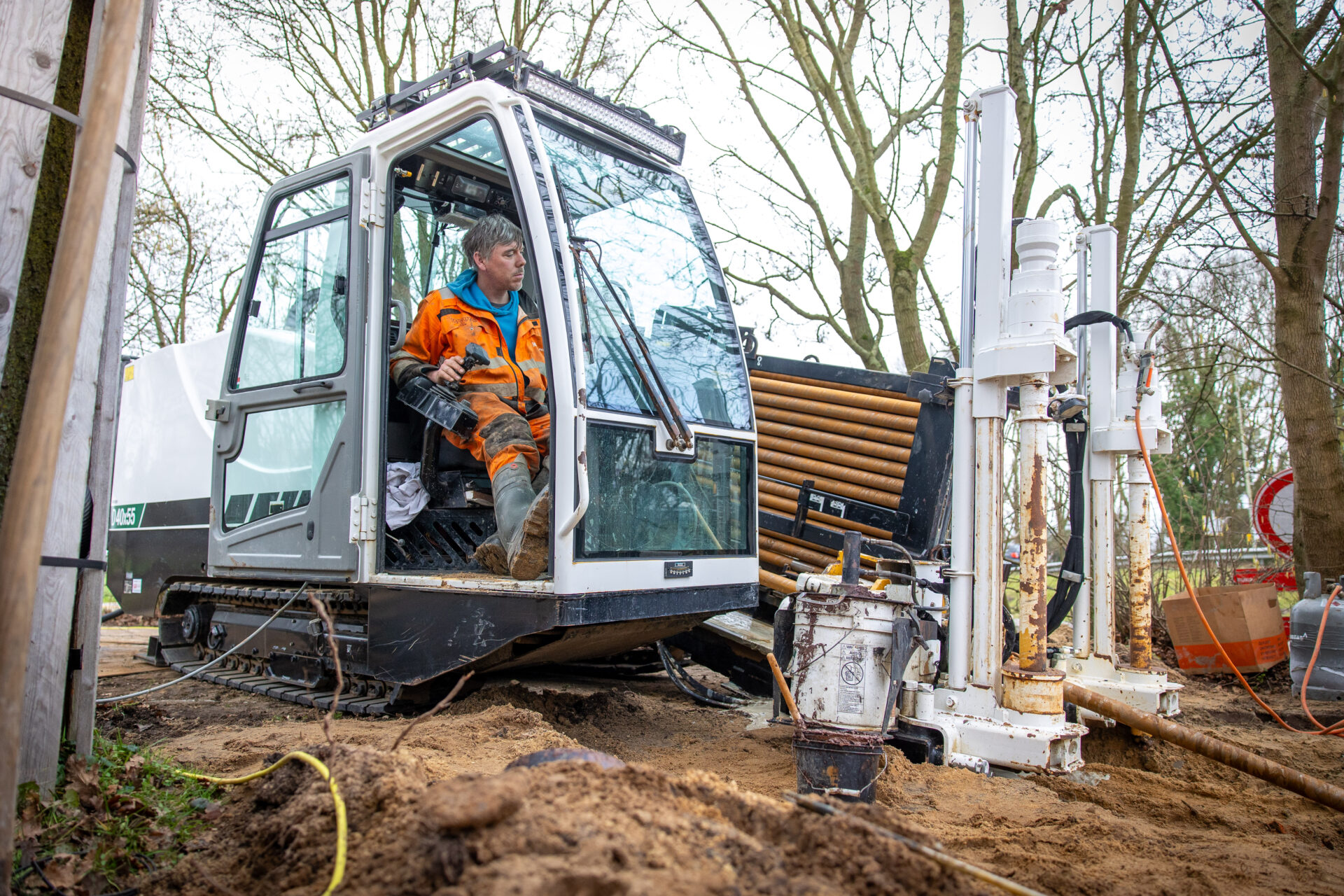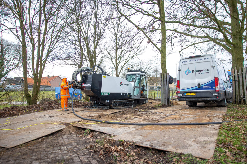 ‘Met een gestuurde boring kunnen we super precies werken. Je ziet er bijna niets van aan de buitenkant, maar ondergronds leggen we de nieuwe route op de juiste plek.’