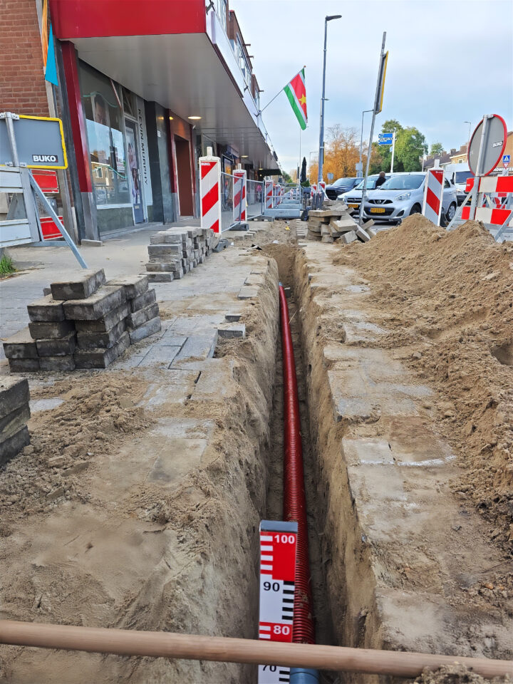 De straat is smal met terrassen, winkels en er lopen veel mensen. Dat maakt het werk extra uitdagend. ‘Het is druk en er is weinig ruimte. Dan moet alles kloppen,’ vertelt Hinko. Bovendien werken we met een harde deadline. De werkzaamheden moeten klaar zijn vóór het graafverbod in het winkelgebied. Daarom plannen we heel precies wie wat doet en wanneer. ‘De juiste mensen op de juiste plek, dat maakt hier het verschil.’