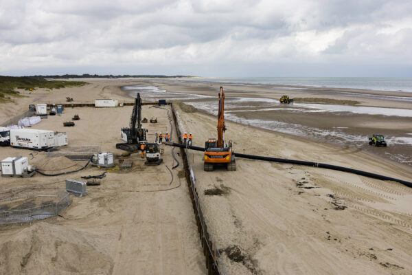 We zijn begonnen bij het werkterrein aan het Veerse Meer. Met een compacte boorkop zijn we heel precies onder de dam doorgegaan. Daarna hebben we stap voor stap het boorgat vergroot. Is de diameter goed? Dan ligt in de vroege ochtend een complete mantelbuis gereed op het strand. Diezelfde dag hebben we die buis in één keer onder de dam doorgetrokken. Een strak georganiseerde operatie. Zo houden we tempo en kwaliteit.